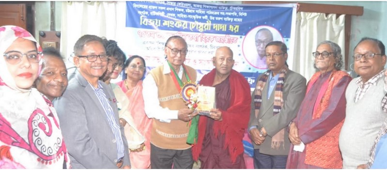 চট্টগ্রাম সাহিত্য পাঠচক্রের উদ্যোগে শ্রীঅরবিন্দ উচ্চ বালিকা বিদ্যাপীঠের অবসরপ্রাপ্ত প্রধান শিক্ষক, বাচিকশিল্পী, সংগঠক বিজয় শংকর চৌধুরীর সংবর্ধনা ও শিক্ষায় তাঁর পথচলা শীর্ষক এক সভা গত ১ জানুয়ারী সন্ধ্যায় সংগঠনের অস্হায়ী কার্যালয়ে অনুষ্ঠিত হয়। সংগঠনের সভাপতি বাবুল কান্তি দাশের সভাপতিত্বে এতে প্রধান অতিথি হিসেবে উপস্থিত ছিলেন চট্টগ্রাম বিশ্ববিদ্যালয়ের পালি, সংস্কৃত বিভাগের সাবেক চেয়ারম্যান প্রফেসর ড. জীনবোধী ভিক্ষু। প্রধান আলোচক ছিলেন চট্টগ্রাম সিটি কর্পোরেশনের জনসংযোগ বিভাগের সাবেক প্রধান কর্মকর্তা সাইফুদ্দীন সাকি। সংগঠনের সাধারণ সম্পাদক আসিফ ইকবালের পরিচালনায় এতে আলোচনা, কবিতা পাঠ, আবৃত্তিতে অংশ নেন কবি আশিষ সেন, ব্যাংকার চন্দন কুমার চৌধুরী, বীর মুক্তিযোদ্ধা কিরণ লাল আচার্য্য, সংগীত শিল্পী অচিন্ত কুমার দাশ, সংগীতা চৌধুরী, আবৃত্তিশিল্পী সোমা মুৎসুদ্দি, সংগঠক প্রকৌশলী সিঞ্চন ভৌমিক, সাবিহা সুলতানা রক্সি, মোঃ তিতাস, নিলয় দে, মোঃ জাফর প্রমুখ। সভায় প্রধান অতিথি তার বক্তব্যে বলেন একজন শিক্ষক সবসময় একজন শিক্ষক হিসেবেই সমাজ পরিবর্তনের হাতিয়ার হিসেবে কাজ করে। শিক্ষকরা সবসময় সমাজ ও দেশের উন্নয়ন সাধনে নিরলস ভুমিকা পালন করে। তিনি বলেন শিক্ষক বিজয় শংকর চৌধুরী বিভিন্ন পর্যায়ে দীর্ঘ প্রায় ৪৮ বছর ১১ মাস ১৯ দিন শিক্ষকতার দায়িত্ব পালন করেছেন তা নিঃসন্দেহে অনেক ত্যাগের মহিমায় ভাস্বরিত। ব্যক্তিগত জীবনে তিনি দু সন্তানকে উচ্চ শিক্ষায় শিক্ষিত করেছেন। সামাজিক, শিক্ষা ও সাংস্কৃতিক কর্মকান্ডে বিজয় শংকর চৌধুরী এখনো সদা তরুণের মত কাজ করে যাচ্ছে। সভা শেষে শিক্ষক বিজয় শংকর চৌধুরীকে সম্মাননা স্মারক, উত্তরীয়, বই ও ফুলেল শুভেচ্ছা প্রদান করেন অতিথিবৃন্দ।
