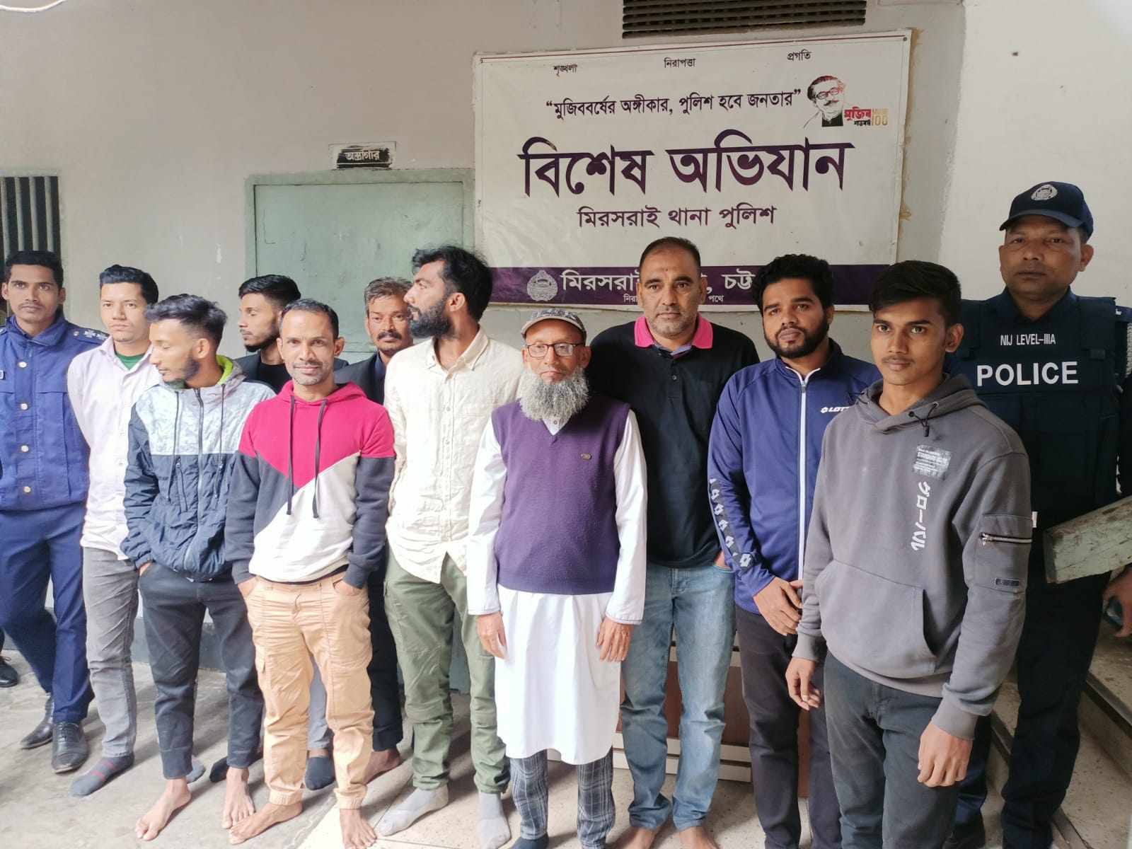 মিরসরাই থানার ভারপ্রাপ্ত কর্মকর্তা (ওসি) সহিদুল ইসলাম বলেন, বুধবার সকালে উপজেলার বড়তাকিয়া বাজারে নির্বাচন বানচাল করতে লিফলেট বিতরণ, মিছিল ও গাড়ি চলাচলে বাধা দেওয়ার সময় উপজেলা বিএনপির আহবায়ক সহ ১০জনকে আটক করা হয়েছে। এসময় নির্বাচন বিরোধী লিফলেট উদ্ধার করা হয়েছে। আটক কয়েকজনের বিরুদ্ধে থানায় পূর্বের মামলা রয়েছে। আটকের ঘটনায় মামলা দায়েরের প্রস্তুতি চলছে। আটককৃতদের আজ বিজ্ঞ আদালতে প্রেরণ করা হবে।