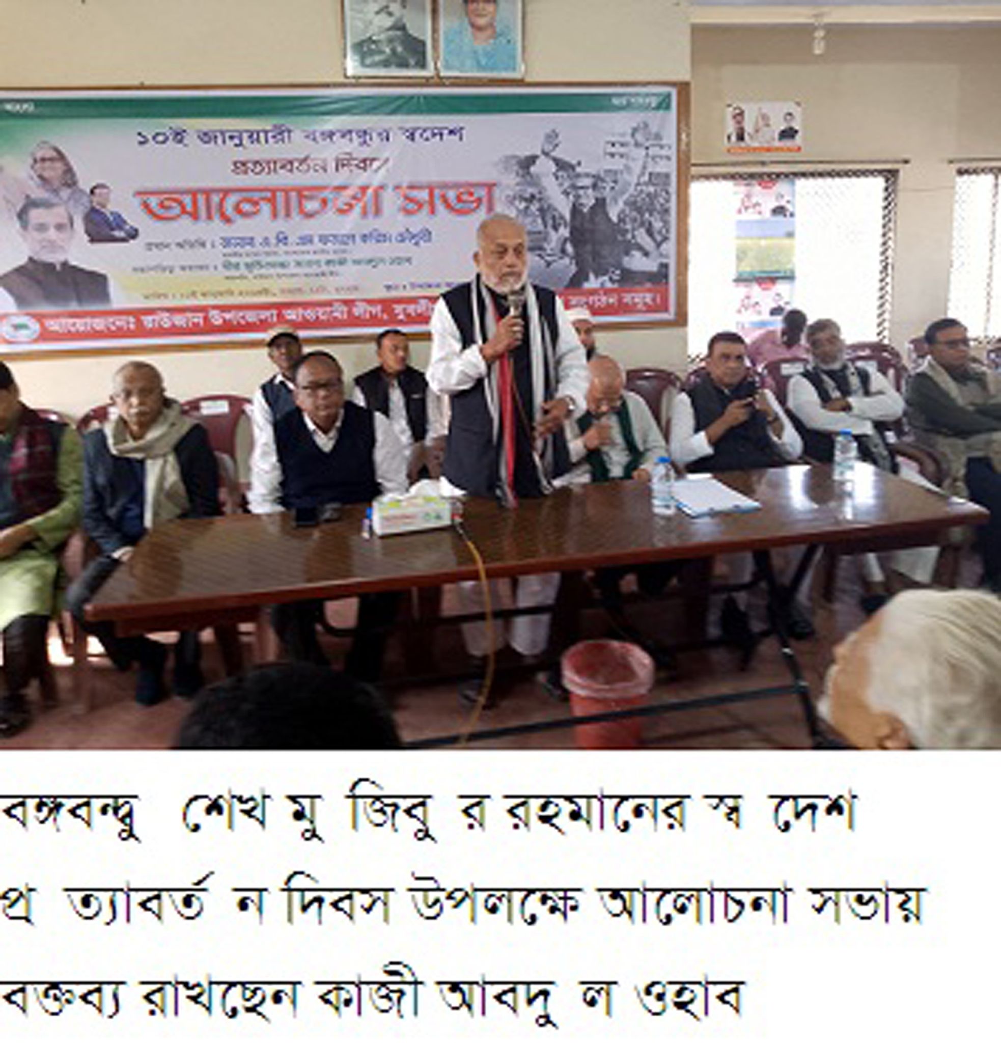 বঙ্গবন্দ্বু শেখ মুজিবুর রহমানের স্বদেশ প্রত্যাবর্তন দিবস উপলক্ষে আলোচনা সভায় বক্তব্য রাখছেন কাজী আবদুল ওহাব