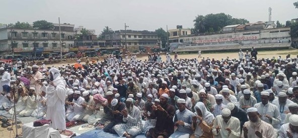 সোমবার (২৯ এপ্রিল) সকাল সাড়ে ১০টায় হাটহাজারী ওলামা পরিষদের উদ্যোগে পার্বতী মডেল সরকারি উচ্চ বিদ্যালয় মাঠে বৃষ্টির জন্য ইসতিসকার নামাজ আদায় করেছেন হাজার হাজার মুসল্লিরা।