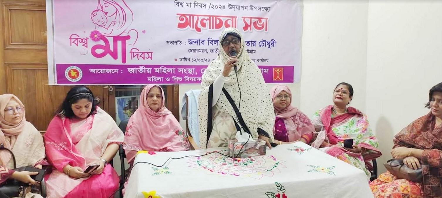 জাতীয় মহিলা সংস্থা চট্টগ্রামের উদ্যোগে বিশ্ব মা দিবস ২০২৪ উপলক্ষে আলোচনা সভা সংস্থার চেয়ারম্যান বিলকিস আখতার চৌধুরীর সভাপতিত্বে গত ১২ মে দুপুরে সংস্থার কার্যালয়ে অনুষ্ঠিত হয়। এতে উপস্থিত ছিলেন জাতীয় মহিলা সংস্থা চট্টগ্রামের সদস্যবৃন্দ সৈয়দা আমেনা সিদ্দিকা, ববিতা বড়ুয়া, নাজিয়া বিনতে আবেদীন, রৌশন আক্তার। জেলা কর্মকর্তা শাহানা পারভীন এর সঞ্চালনায় আরো উপস্থিত ছিলেন জহিরুল ইসলাম, রুশ্নি আক্তার সায়মা নওশীন লুনা, দেলোয়ারা বেগম সুমি, আলমগীর খান নজরুল ইসলাম, ইসমাইল হোসেন, সেকান্দার খান, খুরশিদা বেগম এবং প্রশিক্ষণার্থীবৃন্দ।