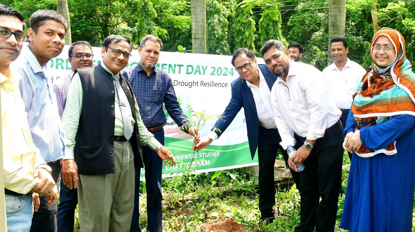 ‘করবো ভূমি পুনরুদ্ধার, রুখবো মরুময়তা, অর্জন করতে হবে মোদের খরা সহনশীলতা’ এ প্রতিপাদ্যকে ধারণ করে চট্টগ্রাম বিশ^বিদ্যালয় ভূগোল ও পরিবেশবিদ্যা বিভাগের উদ্যোগে বিভিন্ন কর্মসূচি অনুষ্ঠিত হয়েছে। এ উপলক্ষ্যে ৫ জুন ২০২৪ সকাল ১০:০০ টায় চবি ভূগোল ও পরিবেশবিদ্যা বিভাগের উদ্যোগে এক বর্ণাঢ্য র্যালি অনুষ্ঠিত হয়। র্যালি শেষে বিশ^ পরিবেশ দিবস ২০২৪ উপলক্ষ্যে একটি নিম গাছের চারা লাগিয়ে বৃক্ষ রোপন কর্মসূচির উদ্বোধন করেন চবি মাননীয় উপাচার্যের দায়িত্বপ্রাপ্ত চবি মাননীয় উপ-উপাচার্য (প্রশাসন) প্রফেসর ড. মোঃ সেকান্দর চৌধুরী। এসময় চবি মাননীয় উপ-উপাচার্য (একাডেমিক) প্রফেসর বেনু কুমার দে, চবি জীব বিজ্ঞান অনুষদের ডিন প্রফেসর ড. মোঃ তৌহিদ হোসেন। চবি ভূগোল ও পরিবেশবিদ্যা বিভাগের সভাপতি প্রফেসর ড. মোহাম্মদ মাহবুব মোর্শেদ, উক্ত বিভাগের শিক্ষকবৃন্দ, শিক্ষার্থীবৃন্দ ও কর্মকর্তা-কর্মচারীবৃন্দ উপস্থিত ছিলেন।