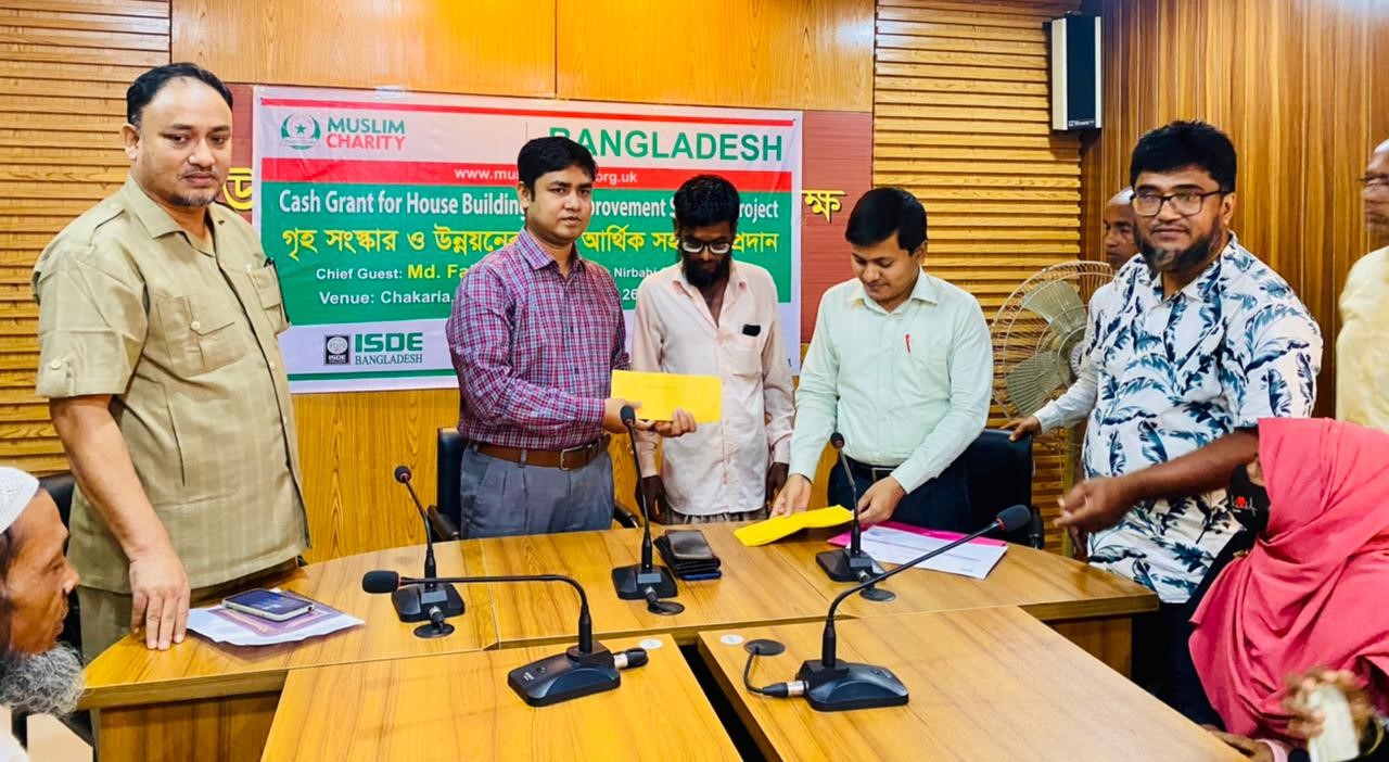 উল্লেখ্য আইএসডিই বাংলাদেশ যুক্তরাজ্য ভিত্তিক আর্ন্তজাতিক উন্নয়ন সংস্থা মুসলিম চ্যারিটির সহযোগিতায় কক্সবাজার জেলার চকরিয়া ও চট্টগ্রাম জেলার ফটিকছড়ি উপজেলায় ১১ টি নতুন ঘর নির্মান করেছেন। এবছর আরও ০৫টি নতুন ঘর স্থাপনের জন্য নগদ সহায়তা প্রদান করছেন। তারই অংশহিসাবে ১১টি ঘরের সংস্কার, গৃহের সার্বিক রক্ষনাবেক্ষন কাজ, প্রয়োজনীয় আসবাবপত্র ও গৃহস্থলির উপকরণ ক্রয়ের জন্য নগদ সহায়তা প্রদান করা হচ্ছে।