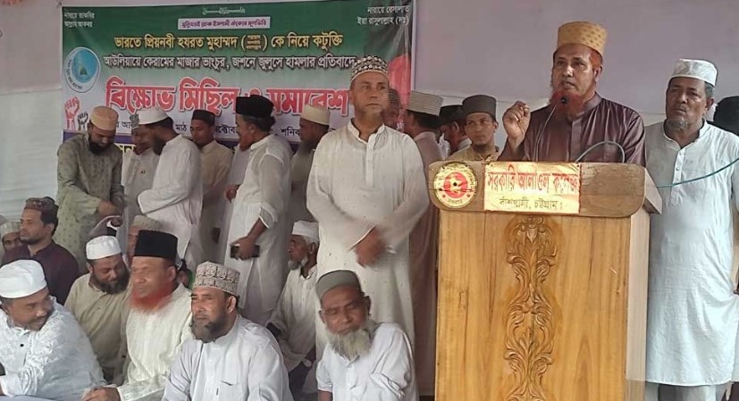 ভারতে বিশ্বনবি হযরত মুহাম্মদ (স) কে নিয়ে কটুক্তি, বিভিন্ন মাজার ও জশনে জুলুসে হামলার প্রতিবাদে আহলে সুন্নাত ওয়াল জামাআত বাঁশখালী শাখার উদ্যোগে প্রতিবাদ সমাবেশ অনুষ্ঠিত হয়েছে।