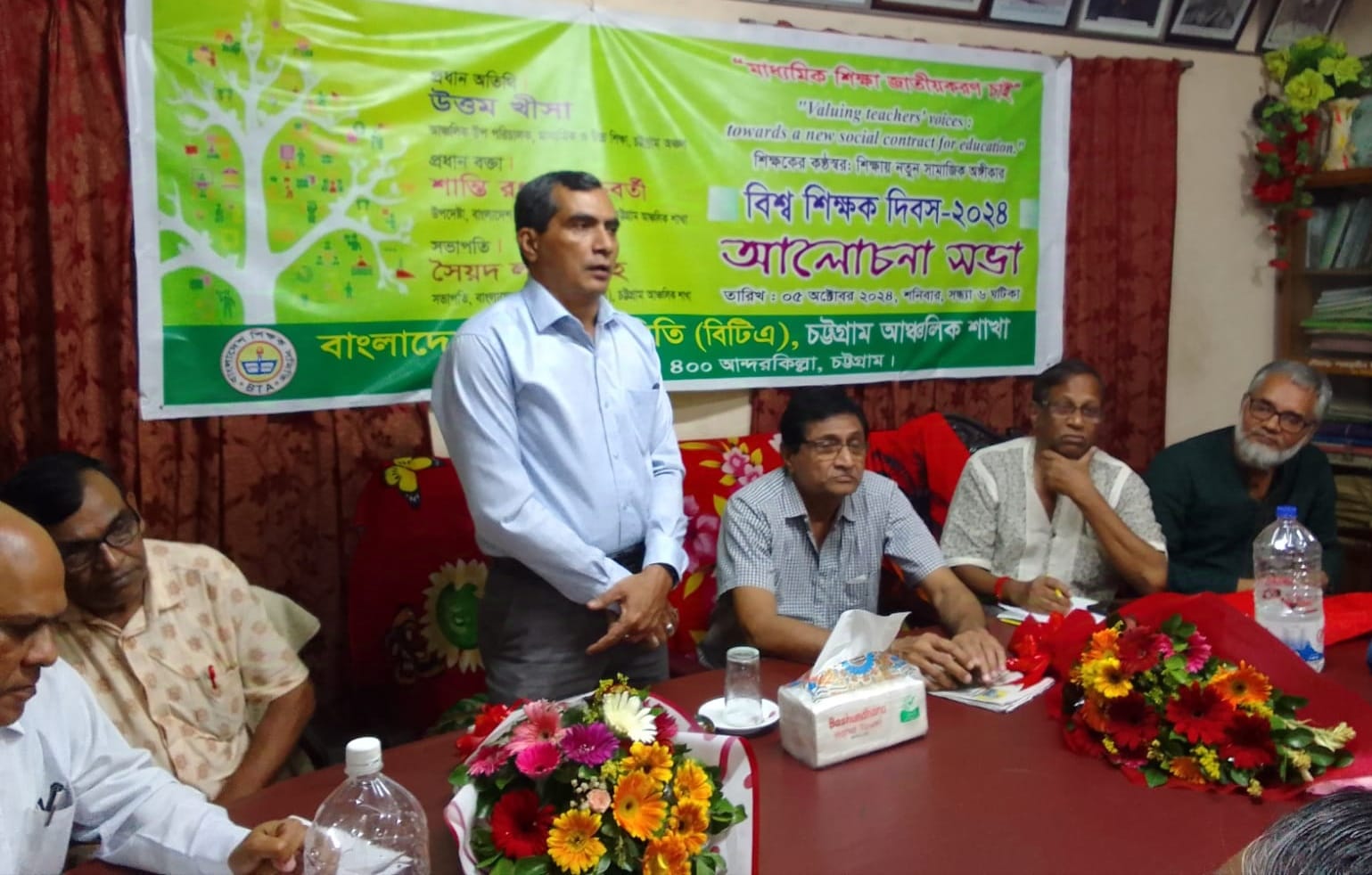 বাংলাদেশ শিক্ষক সমিতি (বিটিএ) চট্টগ্রাম অঞ্চলে আয়োজনে বিশ্ব শিক্ষক দিবসের আলোচনা সভায় মাধ্যমিক ও উচ্চ শিক্ষা চট্টগ্রাম অঞ্চলের উপ পরিচালক উত্তম খীসা প্রধান অতিথির বক্তব্যে এ অভিমত ব্যক্ত করেন। এবারের প্রতিপাদ্য ” শিক্ষকের কন্ঠস্বর: শিক্ষায় নতুন সামাজিক অঙ্গীকার।