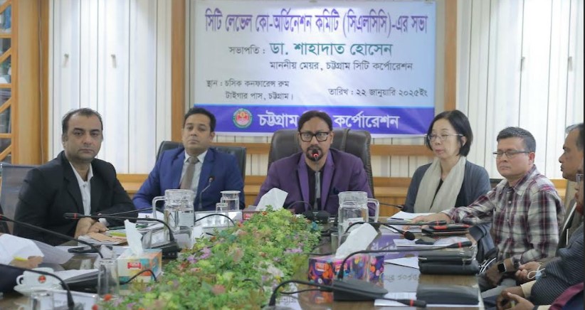 চট্টগ্রাম সিটি কর্পোরেশনের সিএলসিসি (সিটি লেভেল কো-অর্ডিনেশন কমিটি) কমিটির সভা বুধবার (২২ জানুয়ারি) দুপুরে টাইগারপাসস্থ চট্টগ্রাম সিটি কর্পোরেশনের কনফারেন্স কক্ষে অনুষ্ঠিত হয়েছে। সভাটি স্থানীয় সরকার বিভাগের সিটি কর্পোরেশন নাগরিক সম্পৃক্তকরণ নির্দেশিকা অনুযায়ী, ক্যাপাসিটি ডেভেলপমেন্ট অব সিটি কর্পোরেশন (ঈ৪ঈ২) প্রকল্পের আওতায় আয়োজিত হয়।