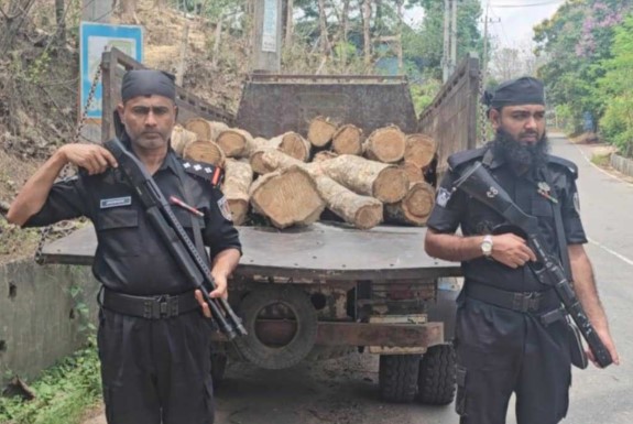 র্যাব জানায়, মেঘলা এলাকায় অবৈধভাবে বনের কাঠ পাচার হচ্ছে—এমন সংবাদের ভিত্তিতে র্যাব-১৫ এর একটি দল সেখানে অভিযান পরিচালনা করে। এসময় ৬০ টুকরো সেগুন গোল কাঠসহ এক পাচারকারীকে আটক করা হয়। পরে বন বিভাগকে খবর দিলে কর্মকর্তারা গিয়ে কাঠগুলো জব্দ করে বন বিভাগের অফিসে নিয়ে আসেন।