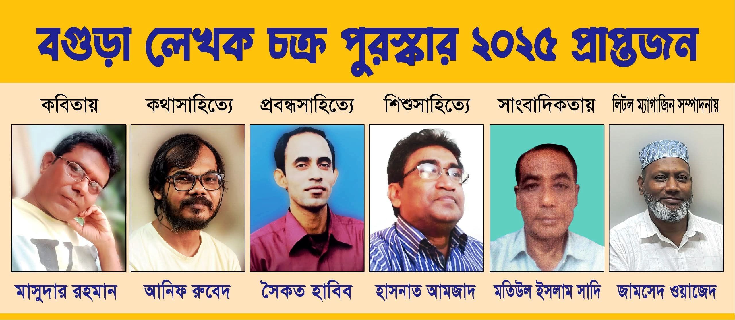 উত্তরের স্বনামধন্য সাহিত্য সংগঠন বগুড়া লেখক চক্র ২০২৫ সালে দেশের ৬ জন গুণী ব্যক্তিকে বিভিন্ন বিষয়ে অবদানের জন্য পুরস্কার ঘোষণা করেছে।