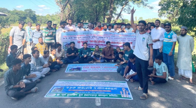 মানববন্ধনে বক্তব্য দেন আবুল কাশেম ফারুকী, মো. ইরফান উদ্দীন, আরমান উদ্দিন, এম এয়াকুব আলী বাদশা প্রমুখ।