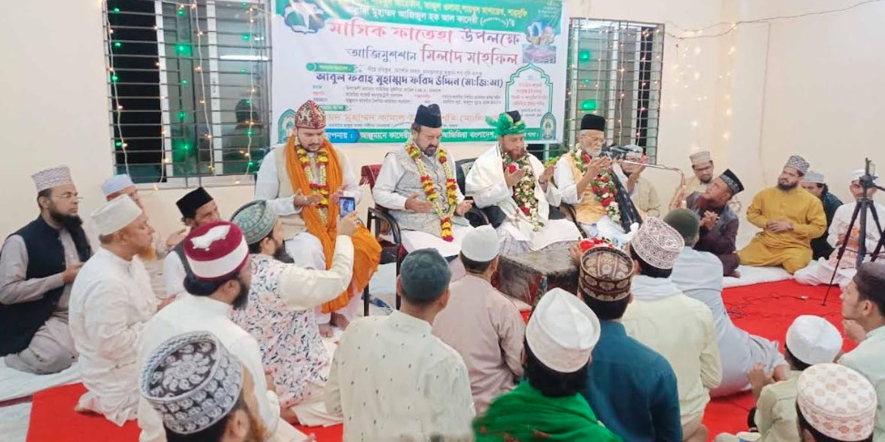 গত ১৫ নভেম্বর ২০২৫ইং রোজ শনিবার আন্জুমানে কাদেরীয়া চিশতিয়া আজিজিয়া চট্টগ্রাম মহানগর শাখা’র উদ্যোগে পুরাতন টি এন্ড টি রোডস্থ খানকায়ে কাদেরীয়া চিশতিয়া আজিজিয়া আলিয়ায় গাউছে যমান, মোর্শেদে বরহক, আল্লামা শাহসূফি মুহাম্মদ আজিজুল হক আল কাদেরী (রহ)’র মাসিক ফাতেহা শরীফ উপলক্ষে আজিমুশ্শান মিলাদ মাহফিলে ছিপাতলী দরবারে আজিজিয়া আলিয়া শরীফের সাজ্জাদানশীন পীরে তরীক্বত হযরতুলহাজ্ব আল্লামা শাহ্ সূফি অধ্যক্ষ আবুল ফরাহ মুহাম্মদ ফরিদ উদ্দিন আল কাদেরী (মাঃজিঃআঃ) সভাপতির বক্তব্যে উপরোক্ত কথাগুলো বলেন। এ সময় প্রধান অতিথি হিসেবে ছিলেন সুদূর ভারত আজমীর শরীফ থেকে আগত খাজা গরীবে নেওয়াজের দরবার শরীফের খাদেম সৈয়্যদ কামাল উদ্দিন চিশতী, সৈয়্যদ মঈনুদ্দীন চিশতী, শাহজাদা সৈয়্যদ আলী ইয়াওর চিশতী। আলোচক হিসেবে ছিলেন মাওলানা ইয়াছিন আনসারী আল মাদানী,ছিপাতলী গাউছিয়া মূঈনিয়া আলিয়া কামিল মাদ্রাসার আরবি প্রভাষক মাওলানা মঈনুদ্দিন খাঁন মামুন আল কাদেরী, ছিপাতলী গাউছিয়া মূঈনিয়া আলিয়া কামিল মাদ্রাসার আরবি প্রভাষক মাওলানা ফখরুদ্দীন চাঁদপুরী, মাওলানা আব্দুন নবী আজিজী, মাওলানা কামাল উদ্দিন কাদেরী, মাওলানা আব্দুন নবী আল কাদেরী,শাহজাদা মাওলানা গোলাম মঈনুদ্দীন আল কাদেরী সহ অসংখ্য আলেম, ওলামা, আশেক ভক্তগণের উপস্থিতিতে মিলাদ কিয়াম, তাবারুক বিতরণ ও মোনাজাতের মাধ্যমে সমাপ্ত করা হয়।