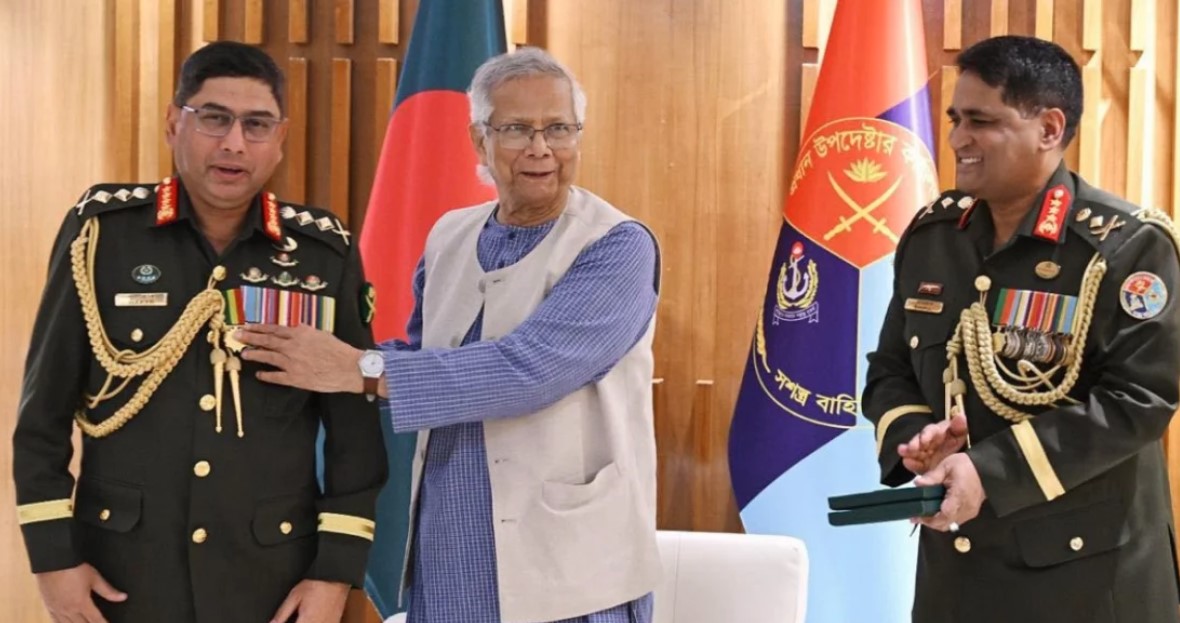 সশস্ত্র বাহিনী দিবস উপলক্ষে সেনাবাহিনী প্রধান জেনারেল ওয়াকার-উজ-জামানকে ‘সেনাবাহিনী পদক’ দিয়েছেন প্রধান উপদেষ্টা অধ্যাপক মুহাম্মদ ইউনূস।