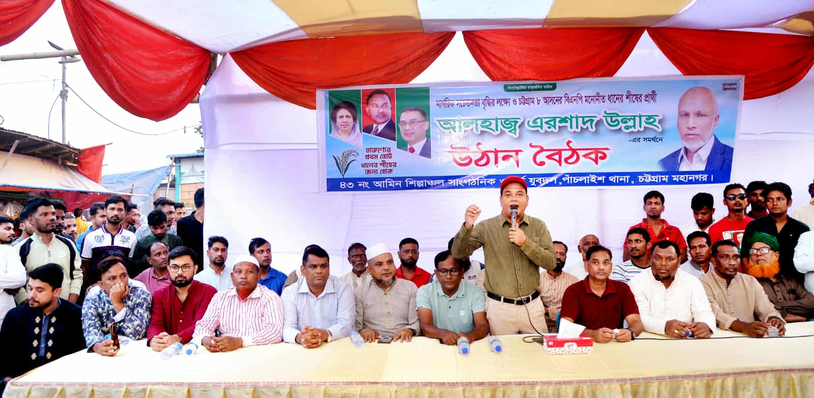 ২১ নভেম্বর (শুক্রবার) বিকাল তিনটায় ৪৩ নং আমিন শিল্পাঞ্চল সাংগঠনিক ওয়ার্ড যুবদলের উদ্যোগে নাগরিক সচেতনতা বৃদ্ধি ও কেন্দ্র ভিত্তিক স্থানীয় জনগণের সাথে আগামী সংসদ নির্বাচনে বিএনপি মনোনীত চট্টগ্রাম -৮ আসনের প্রার্থী এরশাদ উল্লাহ’র ধানের শীষের সমর্থনে উঠান বৈঠকে প্রধান অতিথি’র বক্তব্যে তিনি এসব কথা বলেন।