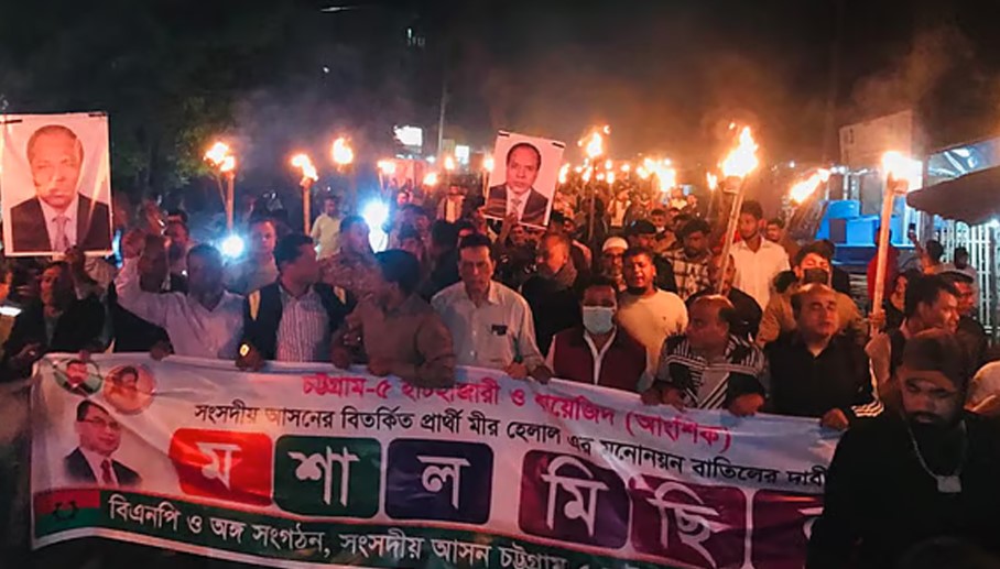 চট্টগ্রাম-৫ (হাটহাজারী) সংসদীয় আসনে বিএনপির মনোনীত প্রার্থী মীর হেলালকে পরিবর্তন করে দলের দুঃসময়ের ত্যাগী নেতা এস এম ফজলুল হককে মনোনয়ন দেওয়ার দাবিতে মশালমিছিল হয়েছে।