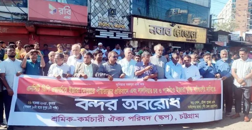 চট্টগ্রাম বন্দরের নিউমুরিং কনটেইনার টার্মিনাল (এনসিটি) ডিপি ওয়ার্ল্ডকে ইজারা দেওয়ার পাঁয়তারার প্রতিবাদ এবং লালদিয়া চর ও পানগাঁও টার্মিনালের ইজারা চুক্তি বাতিলের দাবিতে বন্দর অবরোধ কর্মসূচি পালন করেছে শ্রমিক কর্মচারী ঐক্য পরিষদ (স্কপ)।