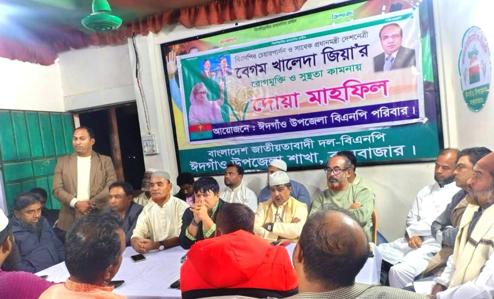এসময় উপজেলা বিএনপির সভাপতি আবুল কালাম বলেন, বেগম খালেদা জিয়া বাংলাদেশের গণতন্ত্র পুনঃপ্রতিষ্ঠায় আজীবন লড়াই করেছেন। দেশের মানুষের জন্য তাঁর অবদান অনন্য। বর্তমানে তার অসুস্থতার খবর আমাদের সকলকে গভীরভাবে উদ্বিগ্ন করেছে। আমরা ঈদগাঁওবাসী তার সুস্থতা ও দীর্ঘায়ুর জন্য আল্লাহর দরবারে বিশেষ দোয়ার আয়োজন করেছি। মানবতার মা দেশনেত্রী বেগম খালেদা জিয়াকে মহান আল্লাহ যেন দ্রুত সুস্থতা দান করেন।