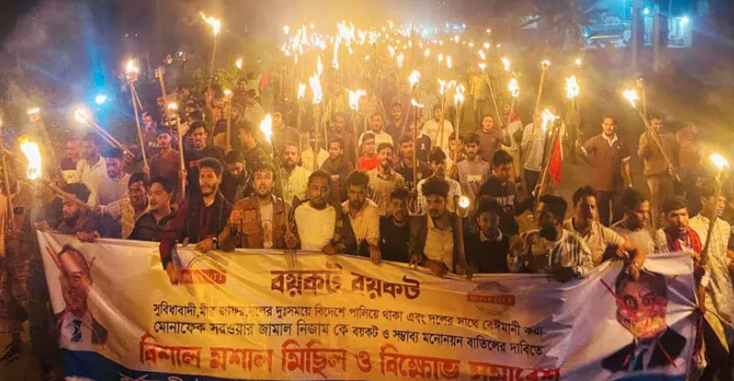 তার আগে ১৩ নভেম্বর কালাবিবির দিঘীর মোড়ে অনুষ্ঠিত মশাল মিছিলে বিক্ষুব্ধ কর্মীরা সড়ক অবরোধ করেন। তারা সরোয়ার জামালের কুশপুত্তলিকা দাহ করেন এবং ব্যানার–ফেস্টুনে আগুন ধরান।