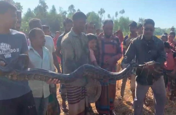 আবারও মৌলভীবাজারের শ্রীমঙ্গলের নোয়াগাঁও গ্রামের ধানক্ষেত থেকে প্রায় ১২ ফুট লম্বা একটি অজগর সাপ উদ্ধার করা হয়েছে। শ্রীমঙ্গল উপজেলার বিভিন্ন লোকালয় থেকে একের পর এক অজগর সাপ উদ্ধার করাতে সাধারণ মানুষের মধ্যে চরম ভীতির জন্ম নিয়েছে। গত দুদিনে বিশাল আকৃতির ২টি অজগর সাপ উদ্ধার করা হয়।