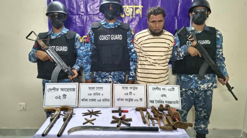 কক্সবাজারের মহেশখালীতে কোস্ট গার্ডের অভিযানে দেশীয় আগ্নেয়াস্ত্র, গোলাবারুদ ও আগ্নেয়াস্ত্র তৈরির সরঞ্জামসহ আগ্নেয়াস্ত্র তৈরির একজন কারিগরকে আটক করা হয়েছে।