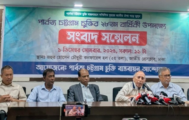 সোমবার (১ ডিসেম্বর) জাতীয় প্রেস ক্লাবে পার্বত্য চুক্তির ২৮তম বার্ষিকী উপলক্ষে আয়োজিত সংবাদ সম্মেলনে এসব দাবি জানানো হয়। সংবাদ সম্মেলনে লিখিত বক্তব্য পাঠ করেন চুক্তি বাস্তবায়ন আন্দোলনের যুগ্ম সমন্বয়কারী জাকির হোসেন।