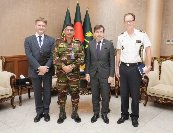 বাংলাদেশে নিযুক্ত ফ্রান্সের রাষ্ট্রদূত জ্যঁ-মার্ক সেরে-শার্লেট (Mr. Jean-Marc Séré-Charlet) বৃহস্পতিবার (৪ ডিসেম্বর) সেনাসদরে সেনাপ্রধান এর সাথে সৌজন্য সাক্ষাৎ করেন।