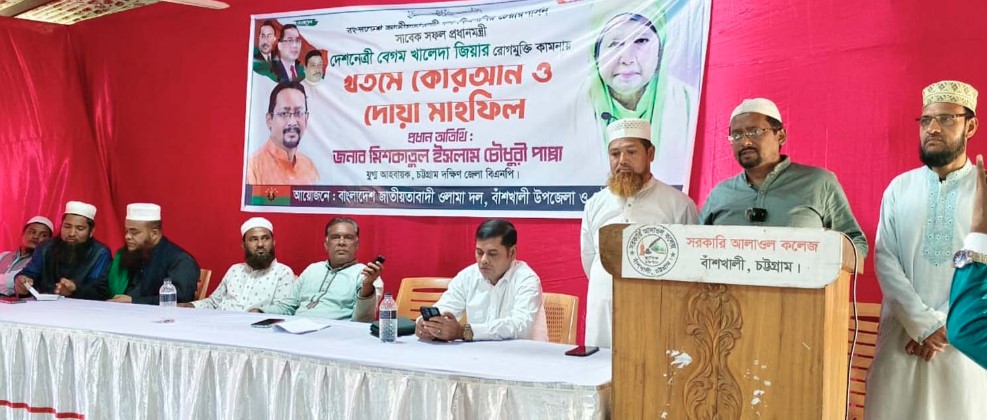 বিএনপি চেয়ারপার্সন ও তিনবারের সাবেক সফল প্রধানমন্ত্রী দেশনেত্রী বেগম খালেদা জিয়ার সুস্থতা কামনায় বাঁশখালী উপজেলা ও পৌরসভা ওলামা দলের উদ্যোগে পৌরসভা ওলামা দলের আহবায়ক মাওলানা হোসাইনের সভাপতিত্বে শনিবার (৬ ডিসেম্বর) দুপুরে সরকারি আলাওল কলেজ হল রুমে দোয়া মাহফিল ও আলোচনা সভা অনুষ্ঠিত হয়েছে।