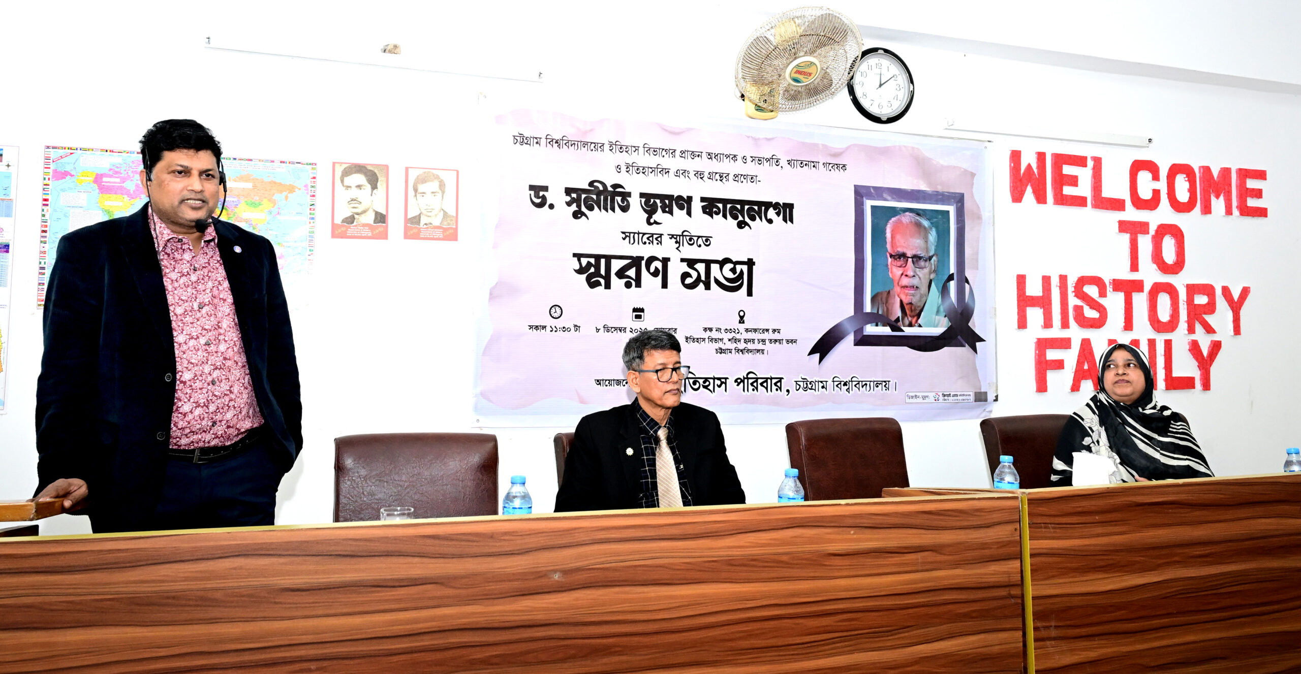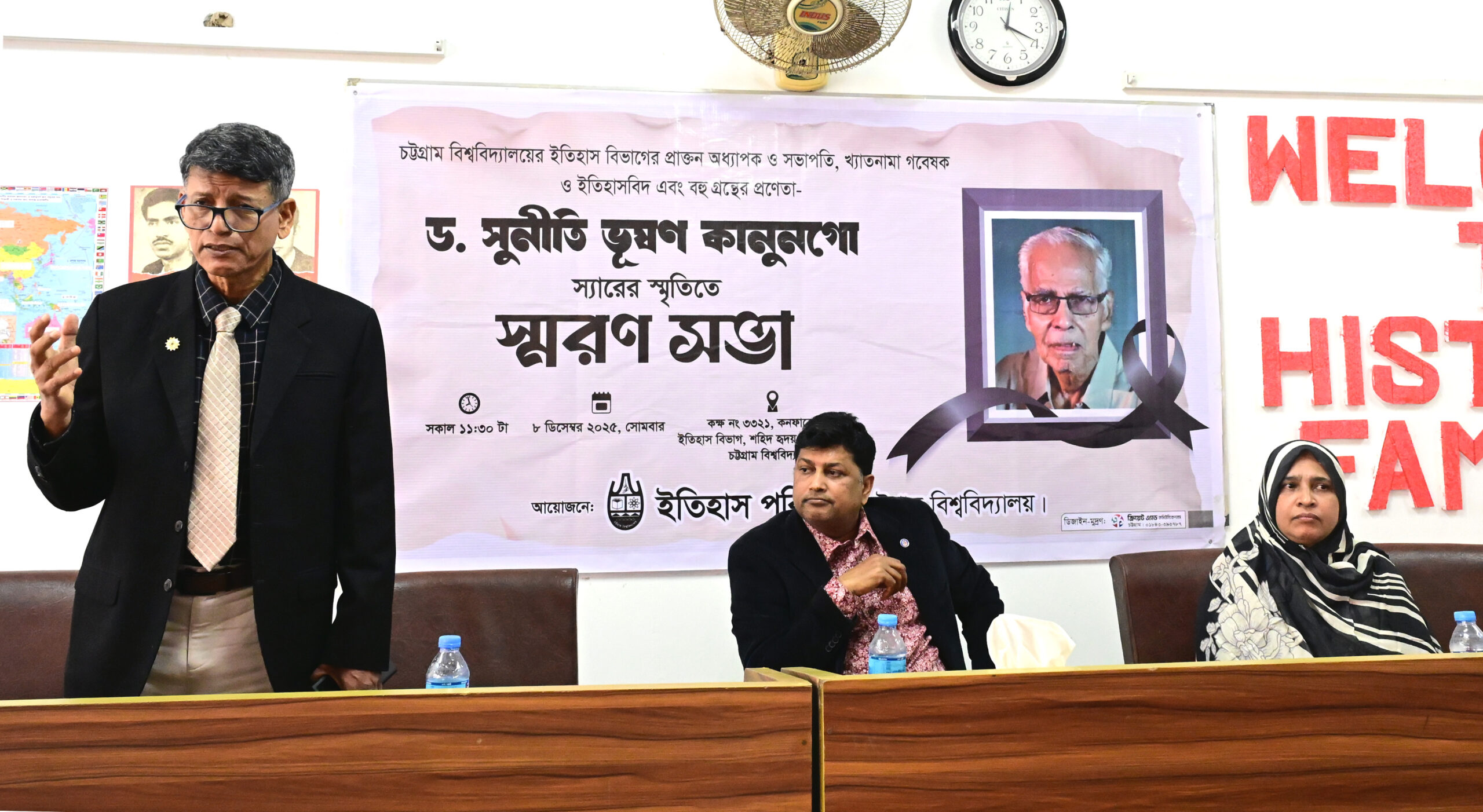 চবি ইতিহাস বিভাগের প্রফেসর ড. আসমা বিনতে শফিক এর সঞ্চালনায় অনুষ্ঠানে সভাপতিত্ব করেন চবি ইতিহাস বিভাগের সভাপতি প্রফেসর ড. শামীমা হায়দার। এসময় অন্যান্যের মধ্যে বক্তব্য রাখেন বিভাগের প্রফেসর ড. আনোয়ারুল ইসলাম, প্রফেসর ড. নূরুল ইসলাম, প্রফেসর ড. আনন্দ বিকাশ চাকমা প্রমুখ। অনুষ্ঠানের শুরুতে ড. সুনীতি ভূষণ কানুনগো এর জীবন ও কর্মের ওপর শিক্ষার্থীদের নির্র্মিত একটি তথ্যচিত্র প্রদর্শন করা হয়।