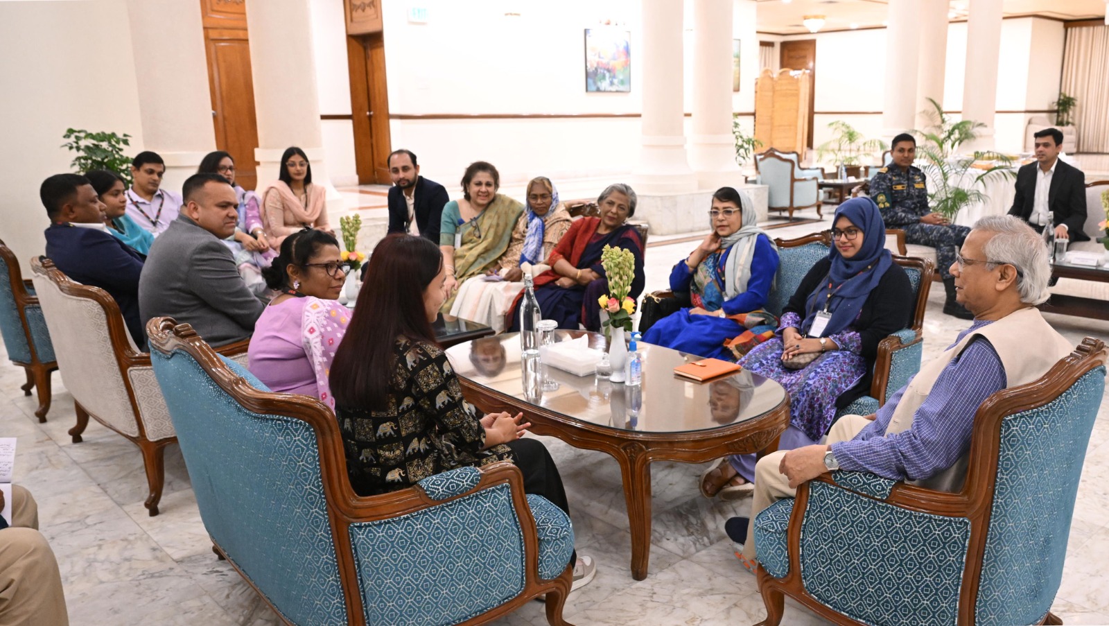 এসময় নারী ও শিশু মন্ত্রণালয়ের উপদেষ্টা শারমিন এস মুরশিদ, এসডিজি–বিষয়ক মুখ্য সমন্বয়ক লামিয়া মোর্শেদ, নারী ও শিশু বিষয়ক মন্ত্রণালয়ের সিনিয়র সচিব মমতাজ আহমেদ উপস্থিত ছিলেন।