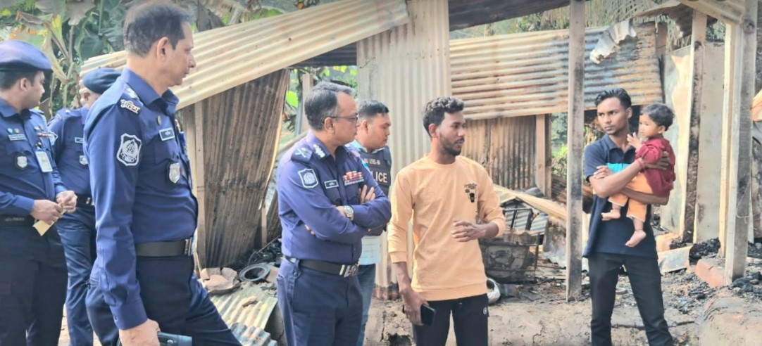 বুধবার (২৪ ডিসেম্বর) দুপুরে ঘটনাস্থল পরিদর্শন করেন চট্টগ্রাম রেঞ্জের ডিআইজি আহসান হাবিব পলাশ ও চট্টগ্রাম জেলা পুলিশ সুপার নাজির আহমেদ খাঁন। এ সময় তাদের সঙ্গে উপস্থিত ছিলেন সহকারী পুলিশ সুপার (রাঙ্গুনীয়া সার্কেল) মোহাম্মদ বেলায়েত হোসেন, পিপিএম এবং রাউজান থানার ভারপ্রাপ্ত কর্মকর্তা সাজেদুল ইসলাম।পরিদর্শনকালে পুলিশের পক্ষ থেকে ক্ষতিগ্রস্ত পরিবারকে তাৎক্ষণিক সহায়তা হিসেবে নগদ এক লাখ টাকা প্রদান করা হয়।স্থানীয়রা জানান, অগ্নিকাণ্ডে ঘরবাড়ি পুড়ে যাওয়ায় পরিবারটি বর্তমানে খোলা আকাশের নিচে মানবেতর জীবনযাপন করছে।চট্টগ্রাম রেঞ্জের ডিআইজি আহসান হাবিব পলাশ বলেন, “সম্প্রতি যেসব ঘটনা ঘটছে, সেগুলোর মূল উদ্দেশ্য হচ্ছে সাম্প্রদায়িক সম্প্রীতি বিনষ্ট করা ও রাষ্ট্রকে অস্থিতিশীল করা। এটি অত্যন্ত দুঃখজনক ও নিন্দনীয়। আমরা এ ঘটনার তীব্র নিন্দা জানাই। তিনি আরও বলেন, এই ঘটনার সঙ্গে যারা জড়িত, তাদের শনাক্ত ও গ্রেপ্তারে পুলিশ কাজ করছে। যারা তথ্য দিয়ে সহযোগিতা করবেন, তাদের পুরস্কৃত করা হবে।”