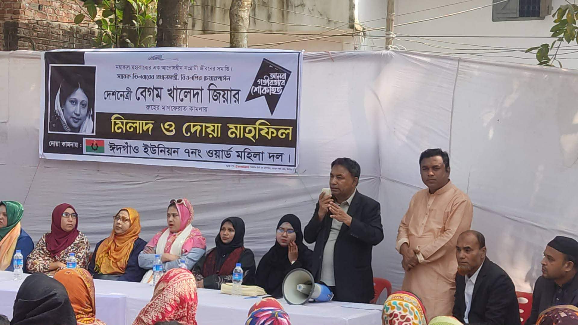 সেলিম উদ্দিন, ঈদগাঁও, কক্সবাজার: বাংলাদেশ জাতীয়তাবাদী মহিলা দল ঈদগাঁও উপজেলা সদর ইউনিয়নের ৭নং ওয়ার্ড মহিলা দলের উদ্যোগে সাবেক প্রধানমন্ত্রী মরহুমা বেগম খালেদা জিয়ার রুহের মাগফিরাত কামনায় দোয়া মাহফিল অনুষ্ঠিত হয়েছে।