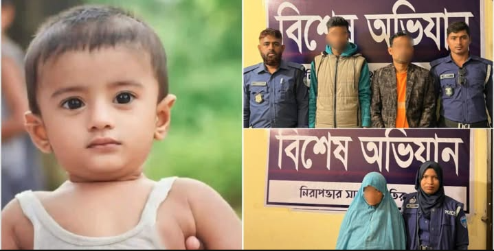 নূর আব্দুল্লাহ নামে ৩ বছরের এক শিশুকে হত্যার ঘটনায় ৩ জনকে গ্রেফতার