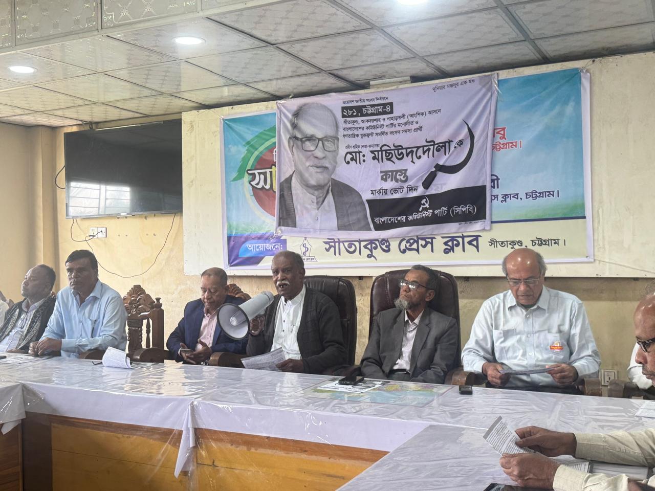 চট্টগ্রাম-৪ (সীতাকুণ্ড ও নগরীর একাংশ) আসনে বাংলাদেশের কমিউনিস্ট পার্টি (সিপিবি) মনোনীত কাস্তে প্রতীকের প্রার্থী মো. মছিউদ্দৌলা মঙ্গলবার (২৭ জানুয়ারি) দুপুরে সীতাকুণ্ড প্রেসক্লাবে সাংবাদিকদের সঙ্গে মতবিনিময় ও পরে গণসংযোগ করেছেন। সংবাদ সম্মেলনে মছিউদ্দৌলা বলেন, নির্বাচনী প্রচারণায় কিছু প্রার্থীর পক্ষে পেশীশক্তি, কালোটাকা ও ধর্মের অবাধ অপব্যবহার চলছে। অবৈধ অস্ত্র উদ্ধার, সন্ত্রাসী-অপরাধীদের গ্রেফতারসহ আইনশৃঙ্খলা পরিস্থিতির উন্নয়নে প্রশাসনের দৃশ্যমান কোনো পদক্ষেপ নেই। এ অবস্থায় ভোটের পরিবেশ নিয়ে জনমনে আশঙ্কা ও ভীতি তৈরি হচ্ছে।