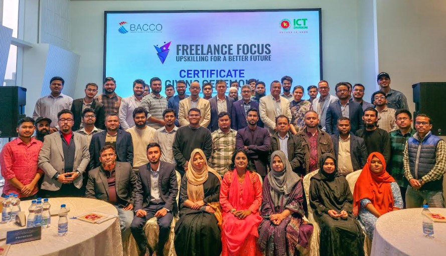 তথ্য ও যোগাযোগ প্রযুক্তি খাতে গবেষণা, দক্ষতা উন্নয়ন এবং উদ্ভাবনী কার্যক্রমকে উৎসাহিত করতে তথ্য ও যোগাযোগ প্রযুক্তি বিভাগের সহায়তায় বাংলাদেশ অ্যাসোসিয়েশন অফ কন্ট্যাক্ট সেন্টার অ্যান্ড আউটসোর্সিং (বাক্কো) “Freelance Focus: Upskilling for a Better Future” শীর্ষক একটি দক্ষতা উন্নয়ন প্রশিক্ষণ কর্মসূচি সফলভাবে বাস্তবায়ন করে। উক্ত প্রশিক্ষণ কর্মসূচির সফল সমাপ্তি উপলক্ষে ০৩ ফেব্রুয়ারি, মঙ্গলবার, রাজধানী ঢাকার বনানীতে অবস্থিত এক মিলনায়তনে সমাপনী অনুষ্ঠানের আয়োজন করা হয়।