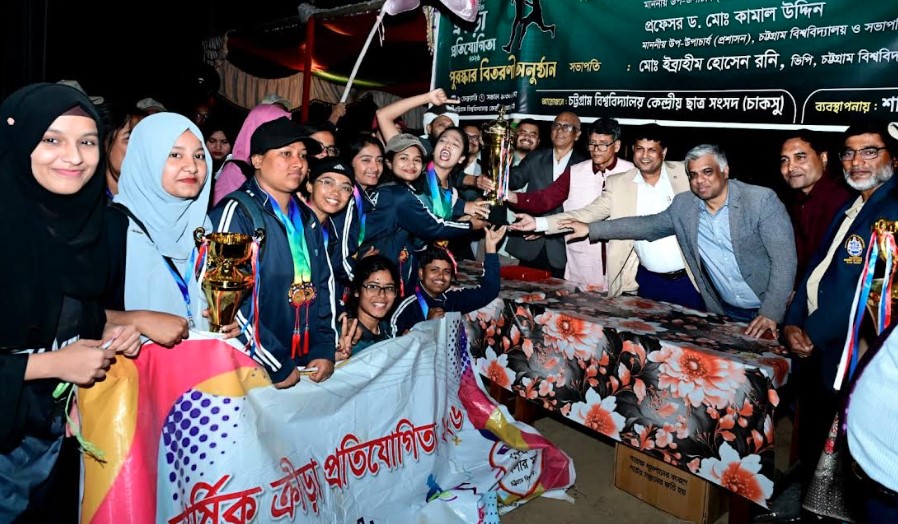 চট্টগ্রাম বিশ্ববিদ্যালয় কেন্দ্রীয় ছাত্র সংসদের (চাকসু) আয়োজনে এবং চবি শারীরিক শিক্ষা বিভাগের ব্যবস্থাপনায় দুই দিনব্যাপী (৮-৯ ফেব্রুয়ারি) বিপুল উৎসাহ-উদ্দীপনা ও বর্ণাঢ্যভাবে অনুষ্ঠিত কেন্দ্রীয় বার্ষিক ক্রীড়া প্রতিযোগিতা-২০২৬ এর সমাপনী ও পুরস্কার বিতরণী অনুষ্ঠান সোমবার (৯ ফেব্রুয়ারি) বিকেল ৫টায় কেন্দ্রীয় খেলার মাঠে অনুষ্ঠিত হয়।