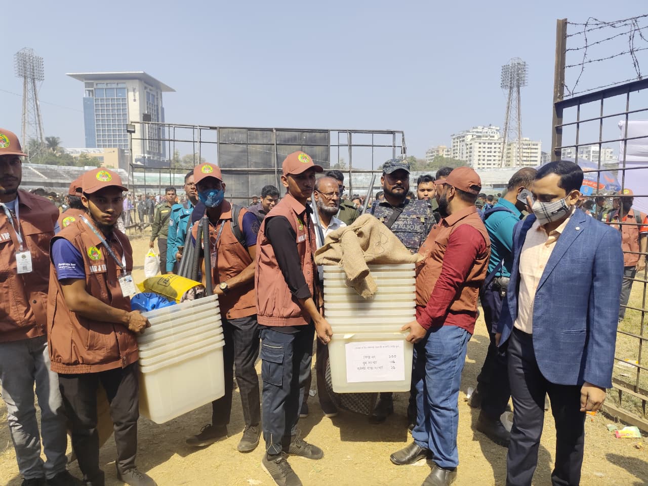 চট্টগ্রাম আঞ্চলিক নির্বাচন কার্যালয় সূত্র জানায়, বুধবার (১১ ফেব্রুয়ারি) সকাল ১০টায় চট্টগ্রাম জেলা স্টেডিয়াম থেকে প্রিসাইডিং কর্মকর্তাদের কাছে নির্বাচনি সরঞ্জাম বিতরণ শুরু হয়।