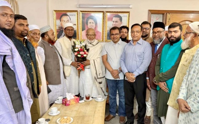কুমিল্লা-১ (দাউদকান্দি-মেঘনা) আসনের নবনির্বাচিত সংসদ সদস্য ও বিএনপির স্থায়ী কমিটির সিনিয়র সদস্য ড. খন্দকার মোশাররফ হোসেনকে ফুলের তোড়া দিয়ে শুভেচ্ছা ও অভিনন্দন জানিয়েছেন বাংলাদেশ জামায়াতে ইসলামী মনোনীত পরাজিত প্রার্থী মো. মনিরুজ্জামান বাহলুল। এ সময় তারা দাউদকান্দি ও মেঘনার সার্বিক উন্নয়ন, শান্তি-শৃঙ্খলা বজায় রাখা এবং পারস্পরিক সম্প্রীতি অটুট রাখার বিষয়ে আলোচনা করেন।