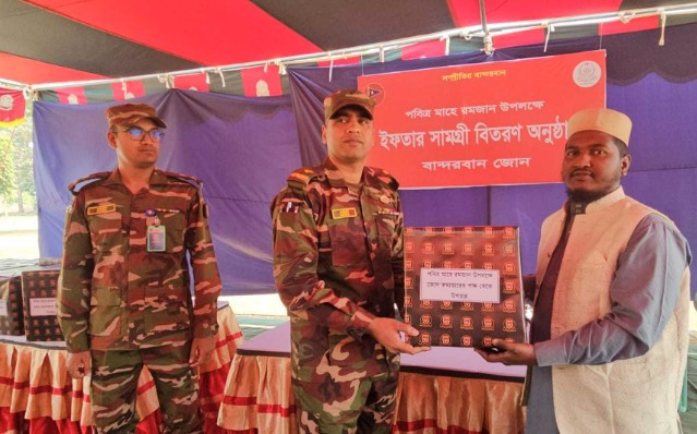 বান্দরবানে সেনাবাহিনীর উদ্যোগে গরিব, অসহায় পরিবার ও এতিমখানার মাঝে ইফতার সামগ্রী বিতরণ করা হয়েছ।