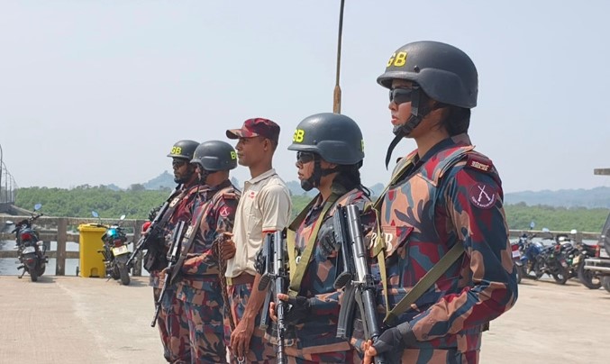মঙ্গলবার (১০ মার্চ) দুপুরে টেকনাফ পৌরসভার জালিয়াপাড়ায় টেকনাফ-মিয়ানমার ট্রানজিট জেটিঘাট এলাকায় নাফ নদীতে বিজিবির নৌ-টহল কার্যক্রম পরিদর্শন শেষে আয়োজিত সংবাদ সম্মেলনে এসব তথ্য জানান টেকনাফ ২ বিজিবি ব্যাটালিয়নের অধিনায়ক লেফটেন্যান্ট কর্নেল মো. হানিফুর রহমান ভূঁইয়া। এ সময় ব্যাটালিয়নের উপ-অধিনায়ক মেজর মুবাশশির নাকীব তরফদার, নৌ-প্লাটুন কমান্ডার (নেভি) লেফটেন্যান্ট ফুয়াদ রহমানসহ সংশ্লিষ্ট কর্মকর্তারা উপস্থিত ছিলেন।