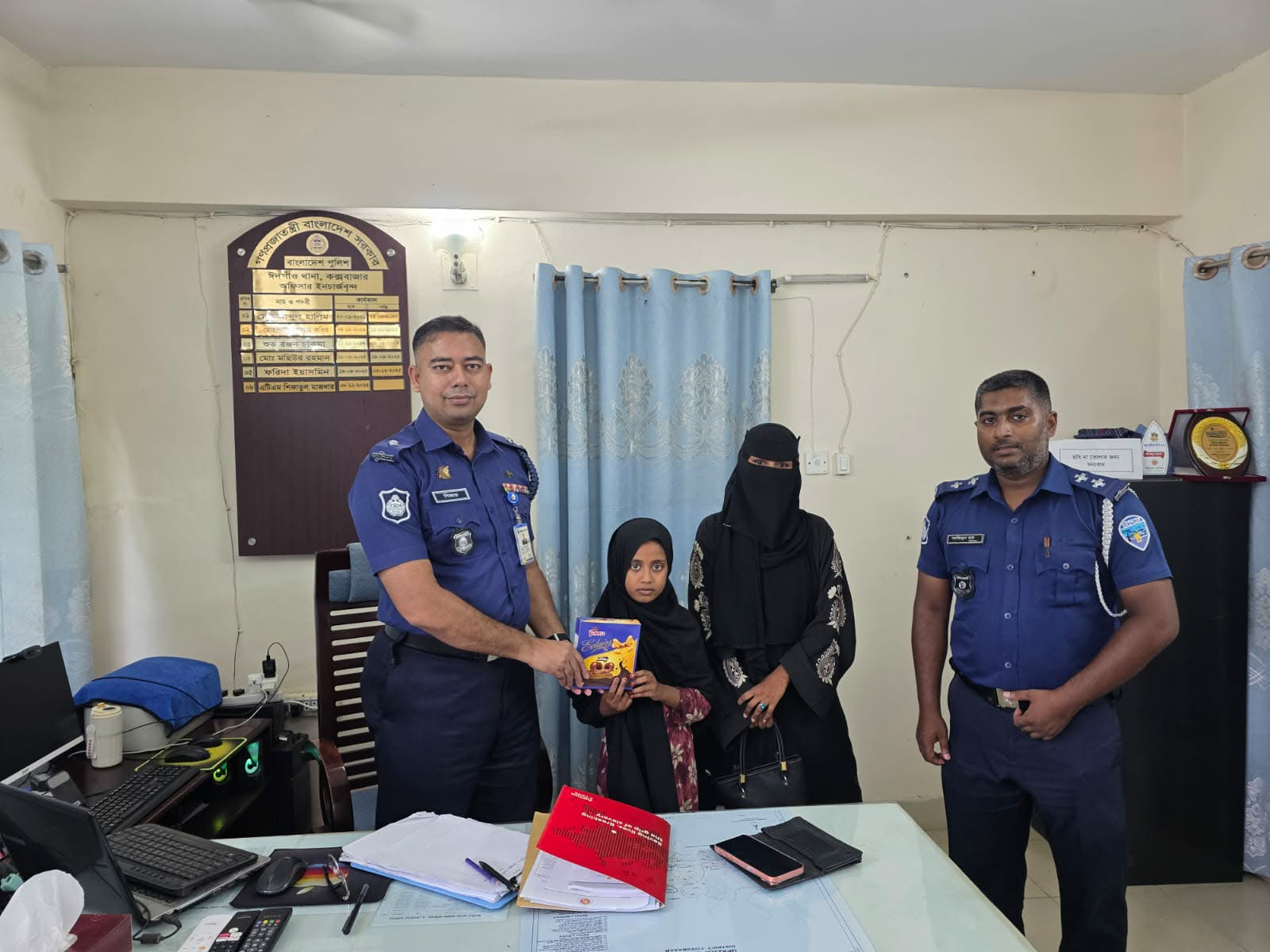 সেলিম উদ্দিন, ঈদগাঁও, কক্সবাজার: মাদরাসায় যাওয়ার পথে পথ হারানো শিশু মিম আক্তারকে (৬) তার পরিবারের কাছে ফিরিয়ে দিল কক্সবাজারের ঈদগাঁও থানা পুলিশ। শিশু মিম আক্তার পাশ্ববর্তী চকরিয়া উপজেলার খুটাখালী ইউনিয়নের পুর্বপাড়া গ্রামোর আজিজুল হকের কন্যা ও স্থানীয় মানারুল হিদায়া মাহিলা হেফজখানার ছাত্রী।
