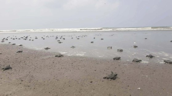 কক্সবাজারের টেকনাফ উপকূলে সাগরে ৩১৪টি সামুদ্রিক কাছিমের বাচ্চা অবমুক্ত করা হয়েছে।