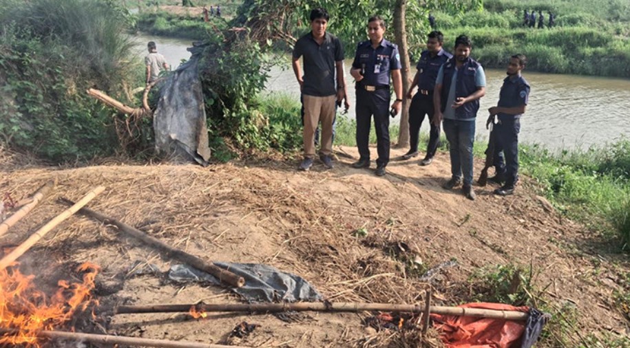 অভিযানে জুয়াড়িদের আস্তানাটি আগুনে পুড়িয়ে দেওয়া হয়।