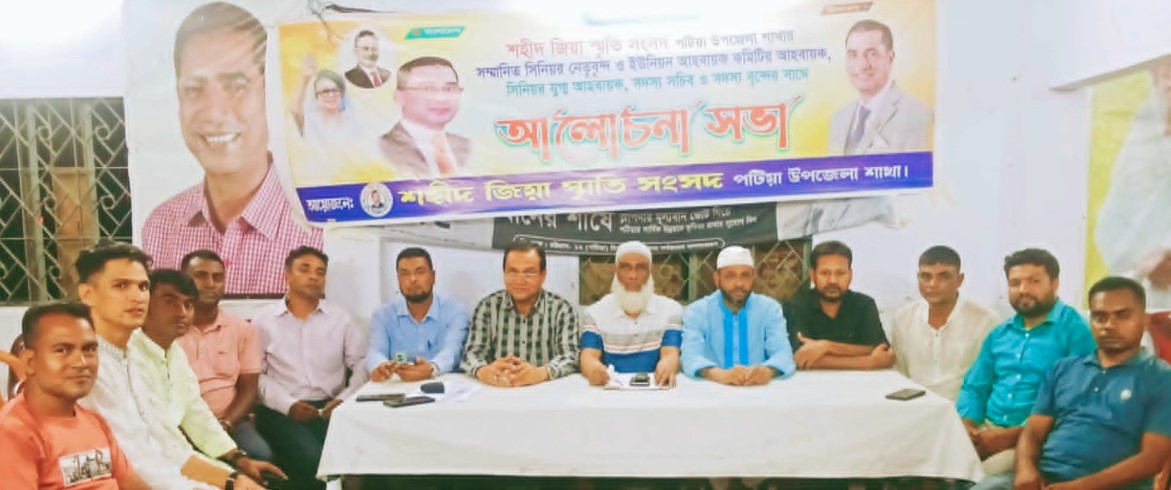 চট্টগ্রামের পটিয়া উপজেলায় শহীদ জিয়া স্মৃতি সংসদের নবগঠিত কমিটি সংস্কার ও দুইটি ইউনিয়ন কমিটির অনুমোদন বিষয়ে এক গুরুত্বপূর্ণ সাংগঠনিক সভা অনুষ্ঠিত হয়েছে।