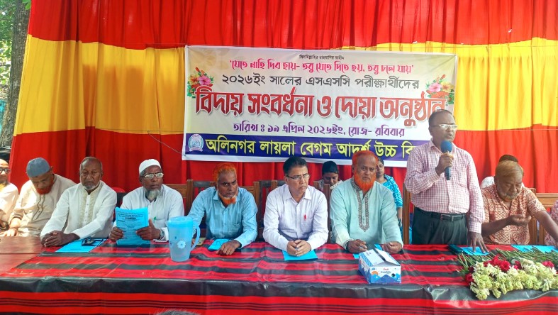১৯ এপ্রিল (রবিবার) অলিনগর লায়লা বেগম আদর্শ উচ্চ বিদ্যালয়ে এসএসসি পরীক্ষার্থী ২০২৬ ব্যাচ এর বিদায় সংবর্ধনা উপলক্ষ্যে আলোচনা সভা ও দোয়া মাহফিল অনুষ্ঠিত হয়| সকাল ১০ ঘটিকায় অনুষ্ঠানের শুরুতে পবিত্র কোরআন তিলাওয়াত, গীতা পাঠের পর জাতীয় সঙ্গীত পরিবেশন এবং মানপত্র পাঠ করা হয়|