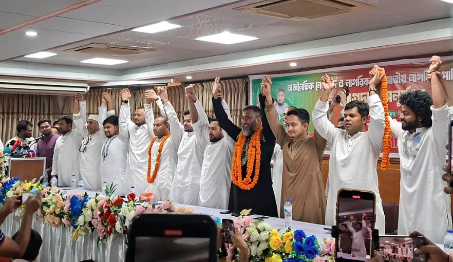 শুক্রবার (২৪ এপ্রিল) বিকেলে রাজধানীর ডিপ্লোমা ইঞ্জিনিয়ার্স ইনস্টিটিউশন মিলনায়তনে আয়োজিত এক অনুষ্ঠানে তারা আনুষ্ঠানিকভাবে এনসিপিতে যোগ দেন। দলটির আহ্বায়ক নাহিদ ইসলাম, আসিফ মাহমুদ সজীব ভূঁইয়া, নাসিরউদ্দিন পাটোয়ারী, সারজিস আলমসহ শীর্ষ নেতারা ফুল দিয়ে নতুন সদস্যদের বরণ করে নেন।