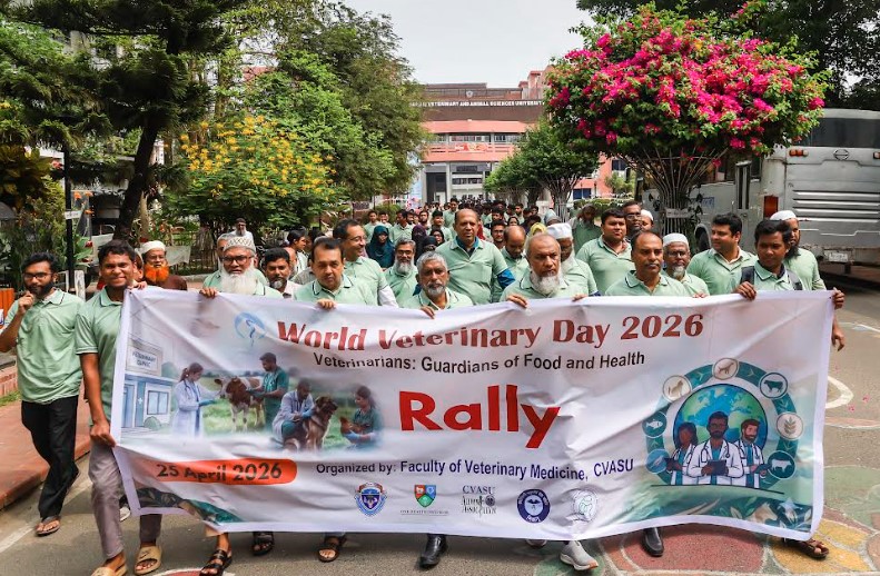 বিশ্ববিদ্যালয়ের ভেটেরিনারি মেডিসিন অনুষদ, ওয়ান হেলথ ইনস্টিটিউট, ভেটেরিনারি অনুষদীয় ছাত্র সমিতি, সিভাসু অ্যালামনাই অ্যাসোসিয়েশন এবং বাংলাদেশ স্মল এনিম্যাল ভেটেরিনারি অ্যাসোসিয়েশন, চট্টগ্রামের যৌথ উদ্যোগে ‘বিশ্ব ভেটেরিনারি দিবস-২০২৬’ উদযাপন করা হয়। দিবসটির এ বছরের প্রতিপাদ্য বিষয় হলো-ভেটেরিনারিয়ানরা খাদ্য ও স্বাস্থ্যের অভিভাবক (Veterinarians: Guardians of Food and Health)।
