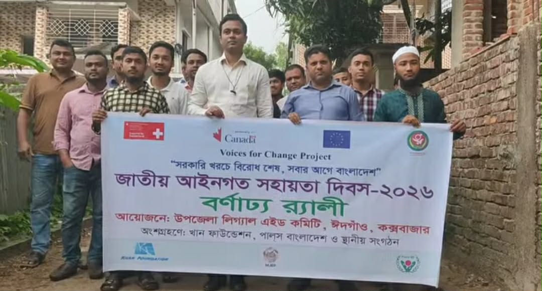 সেলিম উদ্দিন, ঈদগাঁও, কক্সবাজার: “সরকারি খরচে বিরোধ শেষ, সবার আগে বাংলাদেশ” এই স্লোগানে কক্সবাজারের ঈদগাঁওয়ে জাতীয় আইনগত সহায়তা দিবস-২০২৬ উপলক্ষ্যে বর্ণাঢ্য র্যালী ও সচেতনতামূলক কর্মসূচি পালিত হয়েছে।
