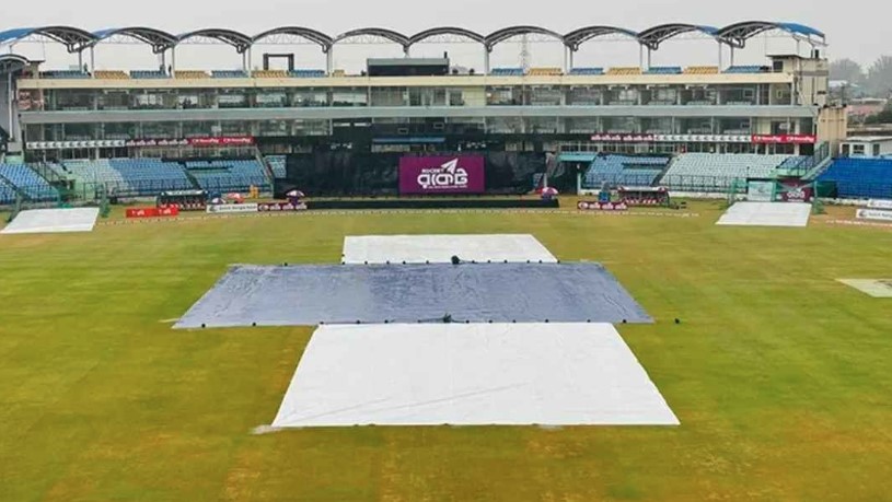 ক্রিকইনফো জানিয়েছে, এই মুহুর্তে বন্দরনগরী চট্টগ্রামে ভারী বৃষ্টি হচ্ছে। বৃষ্টির কারণে উইকেট ঢেকে রাখা হয়েছে। তবে আউট ফিল্ড ভিজছে বৃষ্টিতে।
